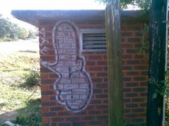 Final stage in removing Solid Graffiti Tag from facebrick by G.R.S