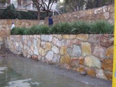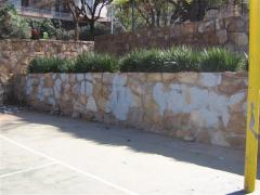 Grey enamel paint & Graffiti markings removed from rock wall and recreational basketball court by G.R.S