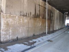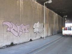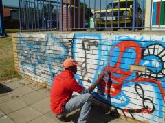 Graffiti removal and high pressure washing of concrete embankment wall by G.R.S