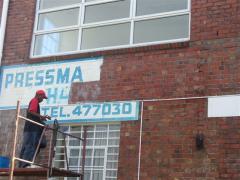 Silver and Black Graffiti tag removed from face brick by G.R.S