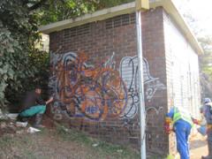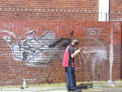 Graffiti Tags being removed by from mini substation by G.R.S