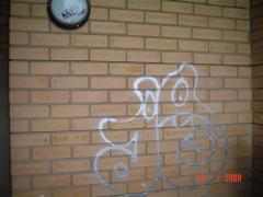 Graffiti Tags cleaned from raw concrete wall by G.R.S