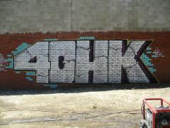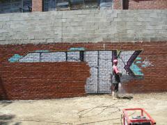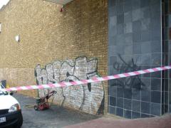 Large Graffiti piece being removed from a face brick wall by G.R.S