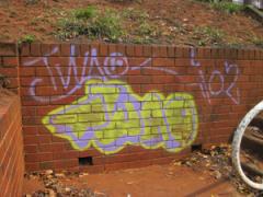 Graffiti Tags and cream PVA paint being stripped by G.R.S
